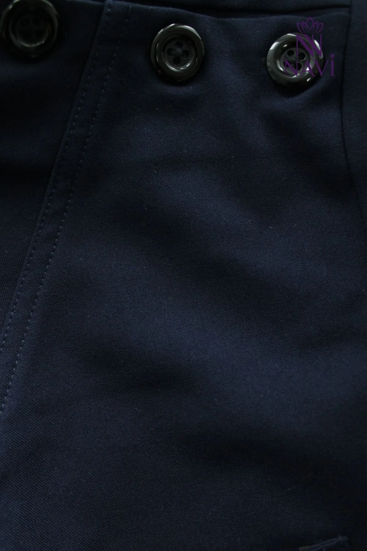 Bộ scrubs nam xanh navy gài nút được thiết kế tiện lợi.