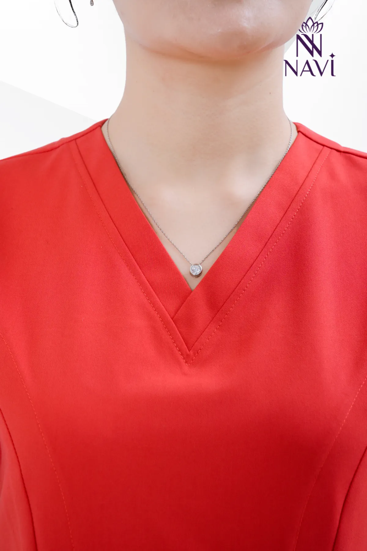 Bộ scrubs nữ đỏ cam NAVI là lựa chọn hoàn hảo cho đội ngũ y tế, spa và thẩm mỹ viện yêu thích phong cách trẻ trung, tươi sáng nhưng vẫn giữ được sự chuyên nghiệp.