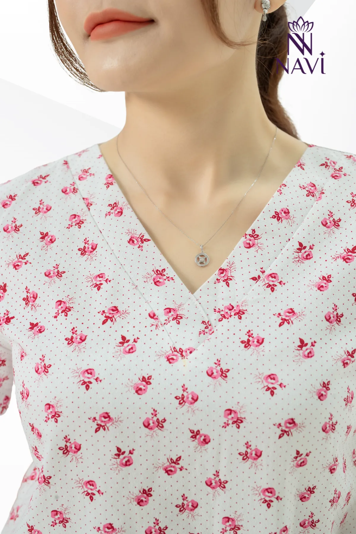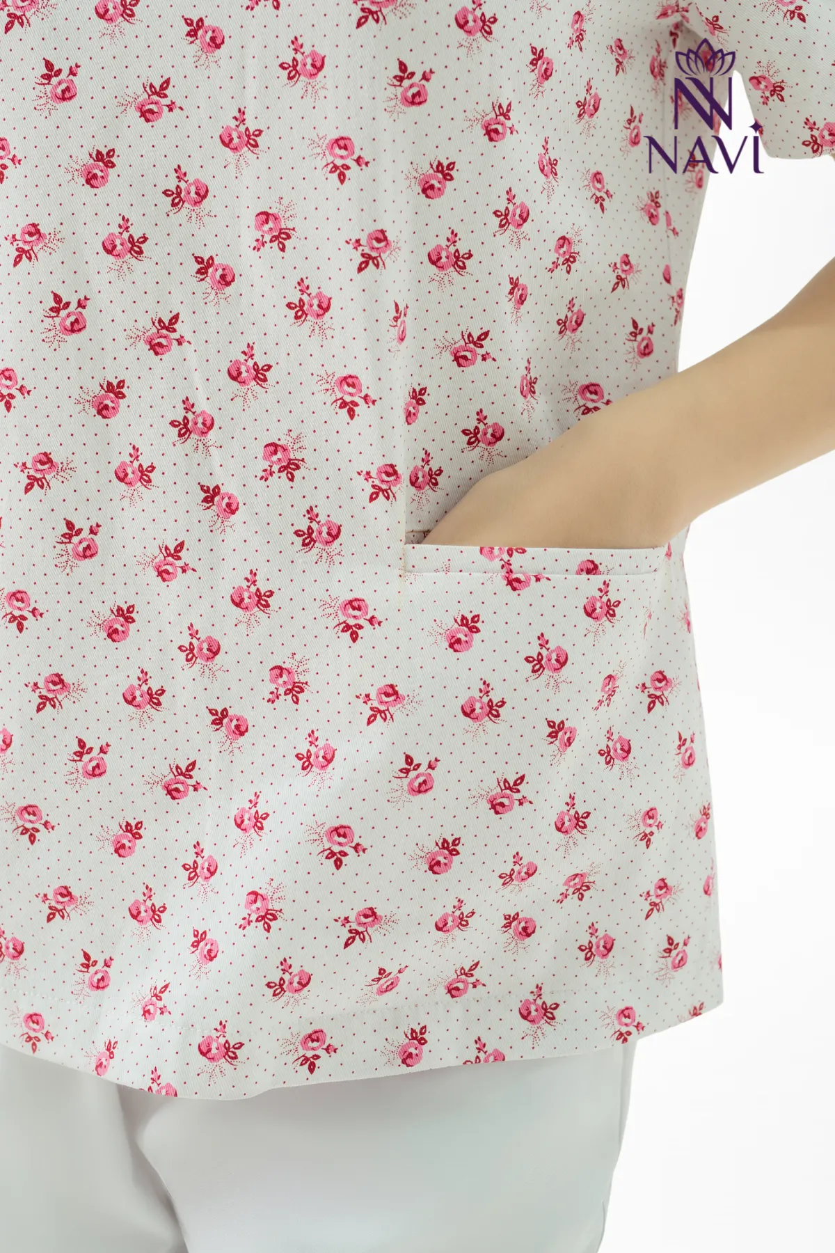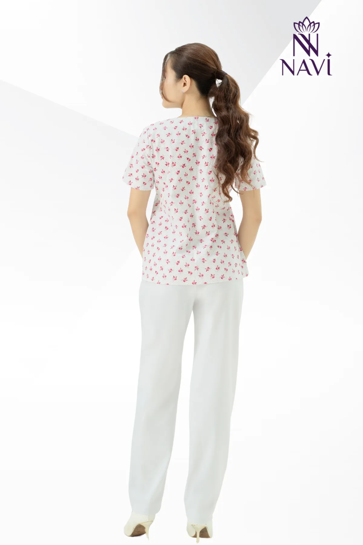 Đẹp dịu dàng, chuẩn chỉnh từng chi tiết với bộ scrubs nữ họa tiết hoa hồng nhỏ của NAVI. Đây sẽ là lựa chọn lý tưởng cho các chị em làm việc trong spa, viện thẩm mỹ, trung tâm chăm sóc sức khỏe cần sự chỉn chu nhưng vẫn giữ được nét nữ tính, dễ thương.
