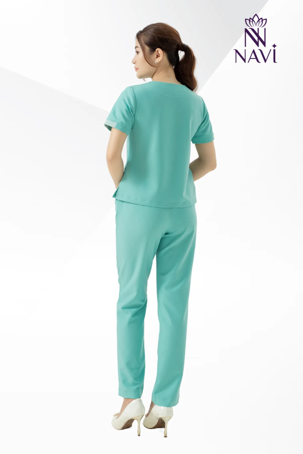 Bộ scrubs nữ NAVI màu xanh mint được thiết kế theo phong cách tối giản hiện đại, giúp người mặc luôn thoải mái, tươi sáng và chuyên nghiệp trong mọi tình huống.
