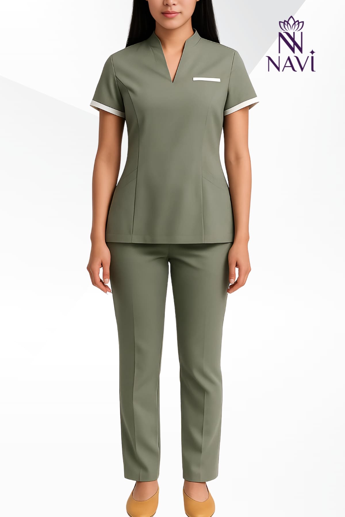 Bộ Scrubs Nữ Olive Phối Viền NAVI Tinh Tế