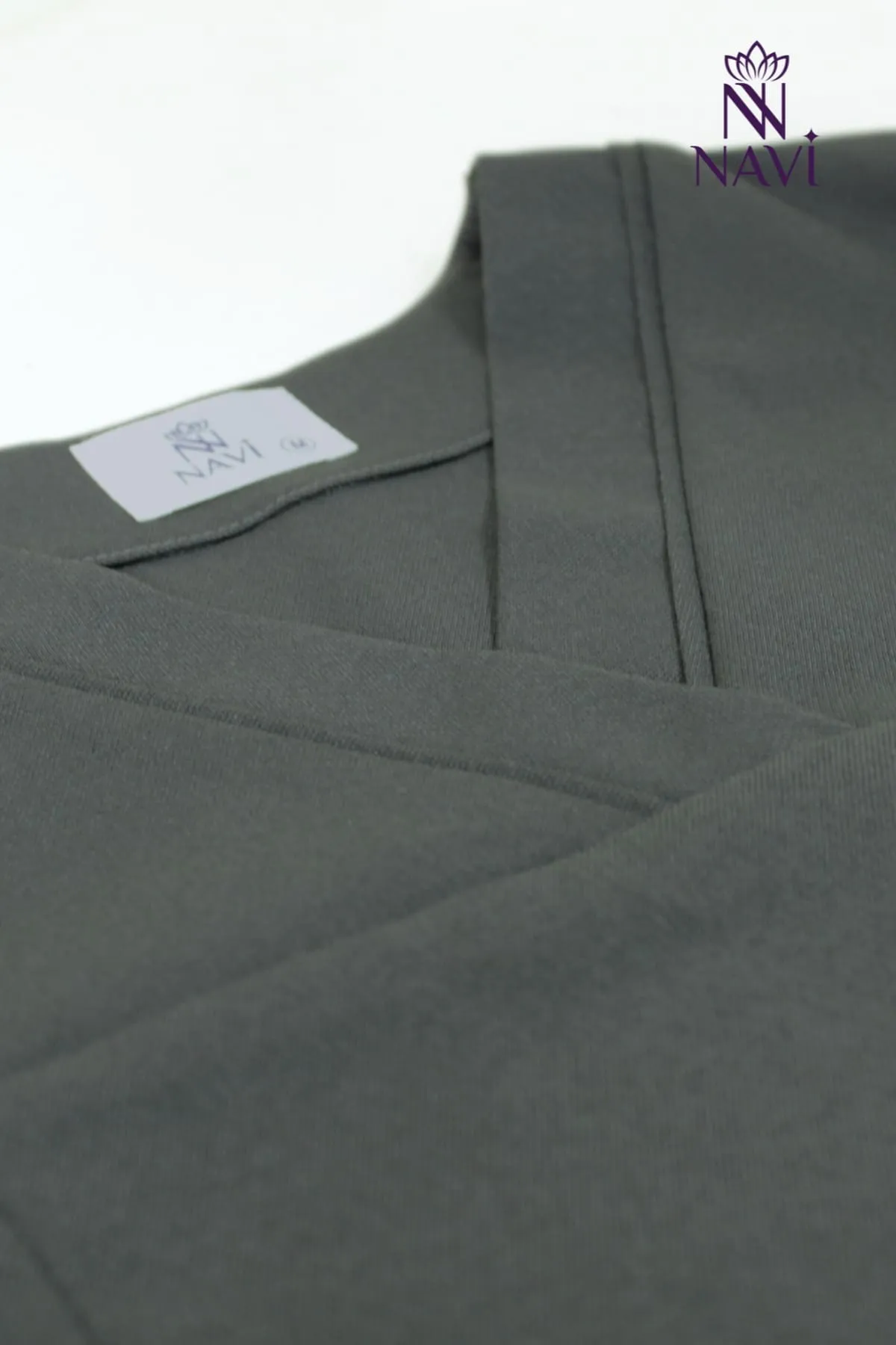 Bộ scrubs nữ xám than đậm cổ tim NAVI được thiết kế theo phong cách tối giản, hiện đại, phù hợp cho các môi trường spa, clinic, nha khoa và y tế dịch vụ.